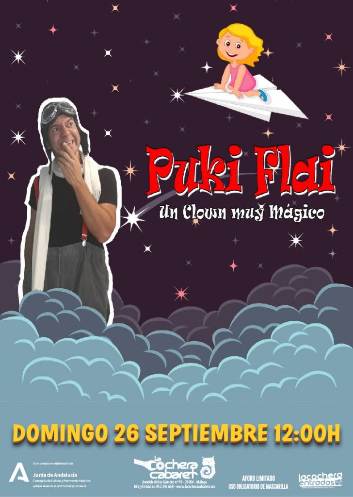 Puki Flai, ‘Un clown muy mágico’, llega a La Cochera Cabaret para los niños el domingo 26 de septiembre a partir de las 12.00 horas.