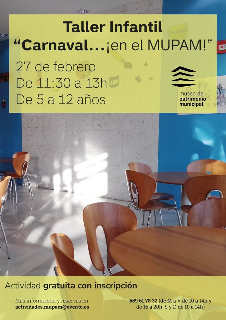 El Museo de Patrimonio organiza para el domingo 27 de febrero el taller infantil ‘Carnaval… ¡en el MUPAM’ para niños de entre 5 y 12 años.