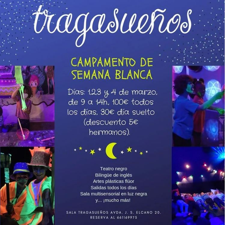 La sala Tragasueños organiza para los días 1, 2, 3 y 4 de marzo un campamento para niños y niñas por un precio total de 100 euros.