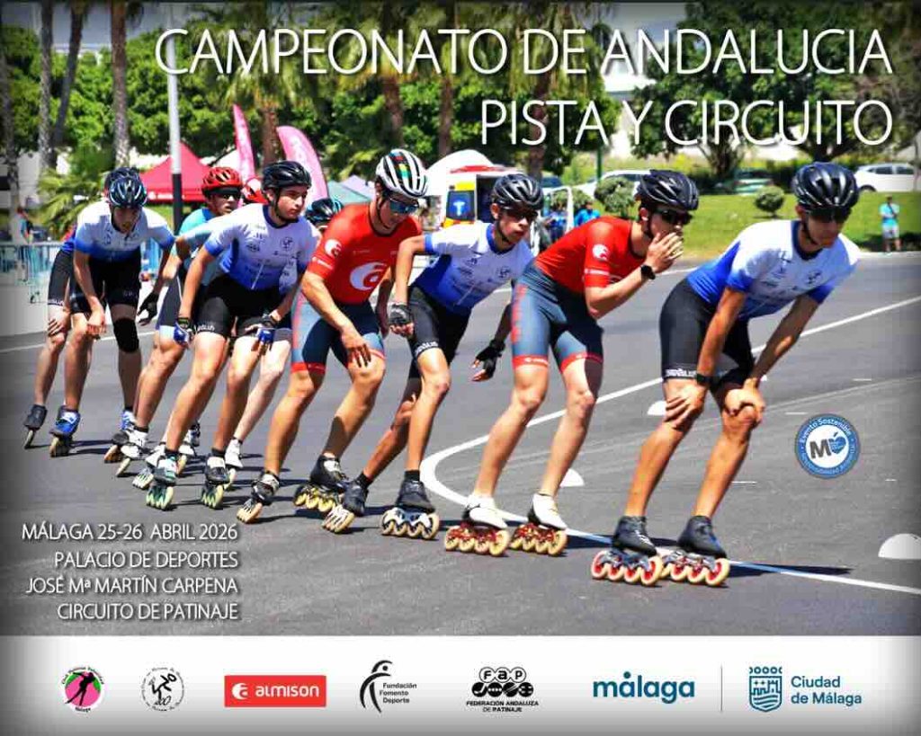 Málaga será sede de los campeonatos de Andalucía de Patinaje de Velocidad 2026 en las modalidades de pista y circuito este fin de semana. La prueba deportiva tendrá lugar en el circuito de patinaje de velocidad en los alrededores del Palacio de Deportes José María Martín Carpena (entre las calles Lexicógrafa María Moliner y calle Periodista Paco Rengel).
