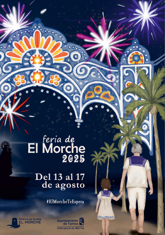 El Morche (Torrox) celebra su feria con las actuaciones estelares de María Peláe, Decai, Joana Jiménez y Seguridad Social. Los festejos tendrán lugar del 13 al 17 de agosto con el pregón inicial del empresario Federico Ruiz y el colofón de la procesión marítimo-terrestre de la Virgen del Carmen. El cartel anunciador, obra de la artista cordobesa Marta Calvo, lleva por título ‘La virgen nos guía, la familia nos une’, y representa a la Virgen del Carmen sobre una barca mientras una familia se le acerca desde la orilla.