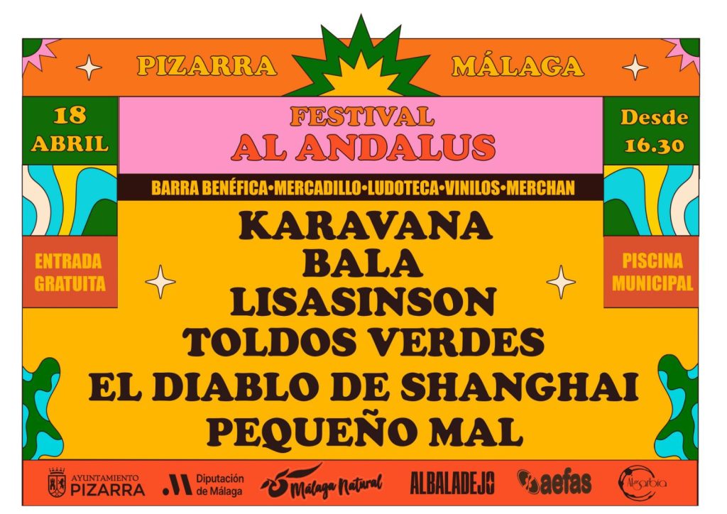 El municipio de Pizarra celebra el próximo sábado, 18 de abril, una nueva edición de su Festival Al Ándalus. Se trata de un evento destinado a todos los públicos, que contempla una jornada completa de ocio y música con acceso libre, con mercadillo artesanal, ludoteca, y restauración, entre otras actividades.