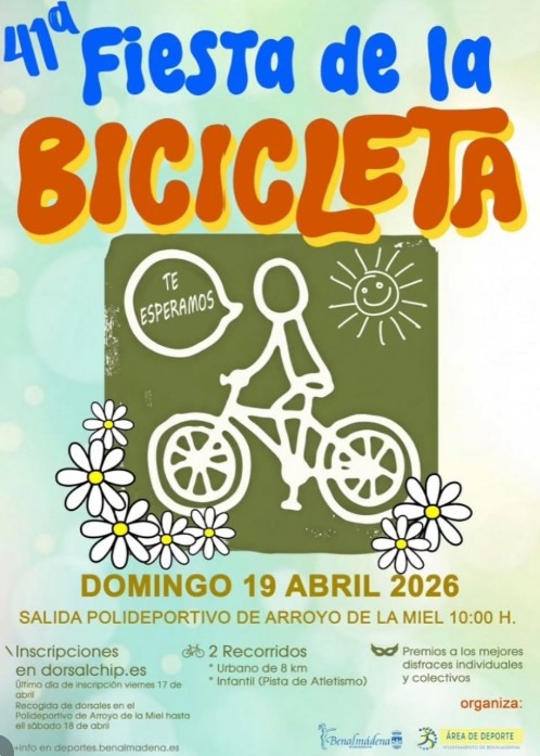 La Fiesta de la Bicicleta cumplirá su edición número 41 el domingo 19 de abril. Se trata de un evento consolidado en el calendario deportivo de Benalmádena enfocado a la actividad física, la convivencia y el uso de medios de transporte sostenibles.