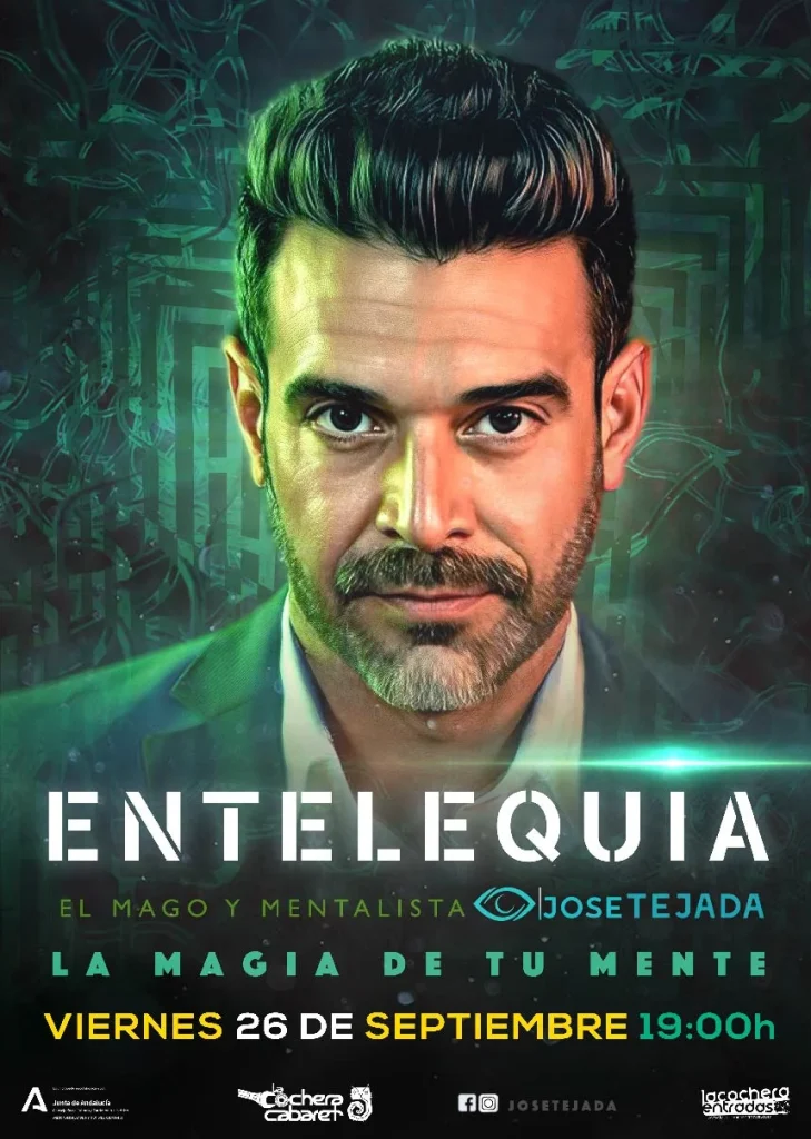 Tras su última visita a la cochera cabaret y con el público queriendo repetir la experiencia, vuelve con nosotros el mago y mentalista internacional José Tejada, Poniendo en escena un show donde no solo la participación del público es constante sino donde también la magia cobra otra dimensión. Entelequia parte de una premisa concreta, crear una situación perfecta e ideal que solo existe en el subconsciente y la imaginación del espectador. Tejada logra a través de diferentes experimentos mentales relacionados con la psicología, la magia mental, el coaching de desarrollo personal y la neurociencia, convertir todo ello en realidad.
