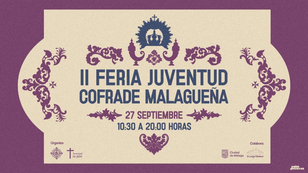 La II Feria de la Juventud Cofrade Malagueña llenará La Caja Blanca de numerosas actividades culturales y lúdicas relacionadas con la Semana Santa el próximo sábado, 27 de septiembre, desde las 10:30 hasta las 20:00 horas, con entrada gratuita hasta completar aforo. La segunda edición de este evento, organizado por la Agrupación de Cofradías en colaboración con el Área de Juventud del Ayuntamiento, cuenta con novedades como un scape room cofrade que se suma a las actividades que tuvieron gran acogida en la primera edición como los conciertos, exposiciones, talleres, tertulias y programas de radio y televisión en directo.