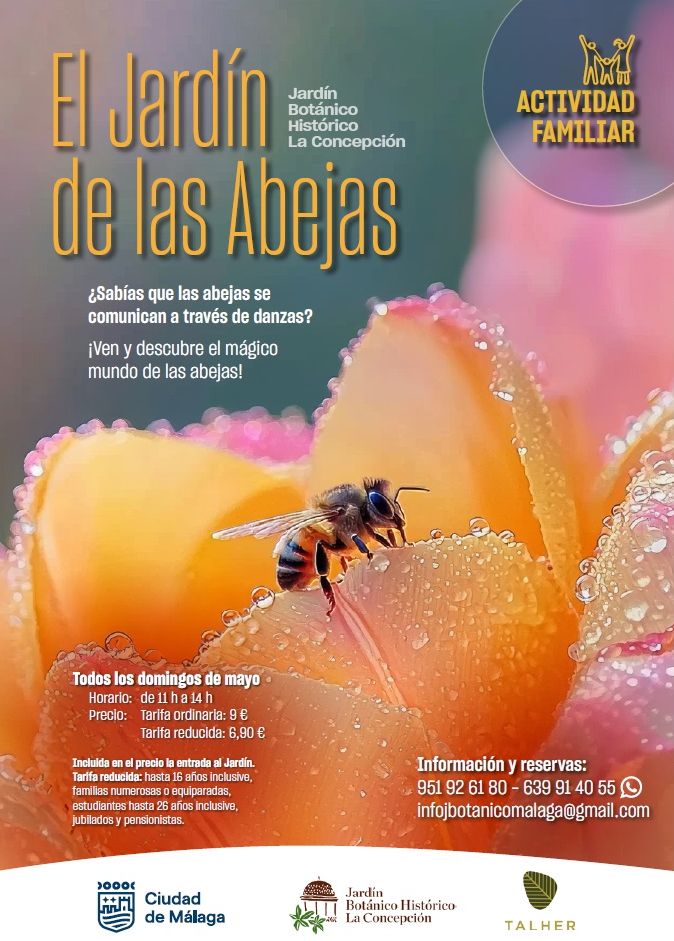 Con motivo del Día Mundial de las Abejas, que se celebra en mayo, todas las mañanas de los domingos de este mes el Jardín Botánico Histórico La Concepción ofrece una jornada de 3 horas para disfrutar en familia descubriendo el mágico mundo de las abejas.