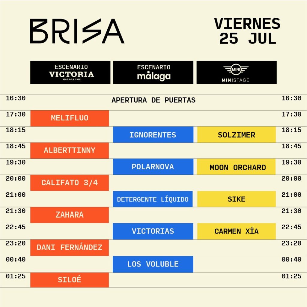 La quinta edición de Brisa Festival tendrá lugar los días 24, 25 y 26 de julio. En el Puerto de Málaga, se desarrollarán actuaciones de artistas como Dani Fernández, Viva Suecia, Zahara o Cariño, entre otros muchos más.