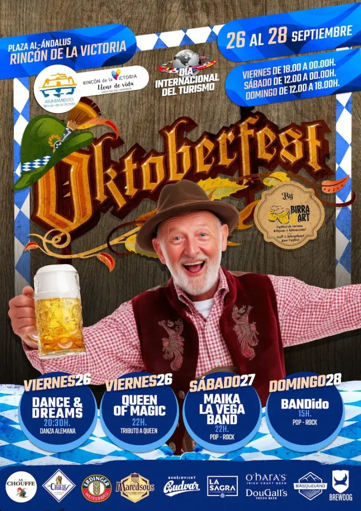 La Plaza Al-Ándalus de Rincón de la Victoria se transformará del viernes 26 al domingo 28 de septiembre en el epicentro festivo con la celebración del Oktoberfest, que contará con una programación musical de primer nivel.