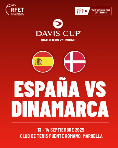 España y Dinamarca se enfrentan en eliminatoria de Copa Davis el 13 y 14 de septiembre en Puente Romano, Marbella.