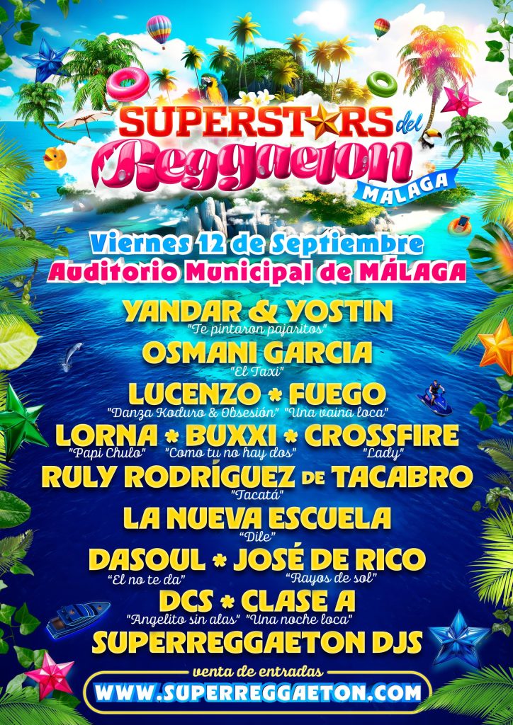 Fiesta Superstars del Reggaeton este viernes 12 de septiembre a las 21.00 horas en el Auditorio Municipal de Málaga.