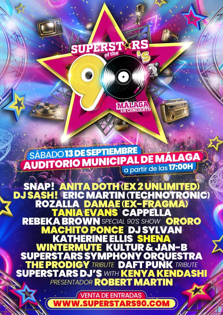 Fiesta de los Superstars 90’s en el Auditorio de Málaga este próximo sábado 13 de septiembre a las 17.00 horas.