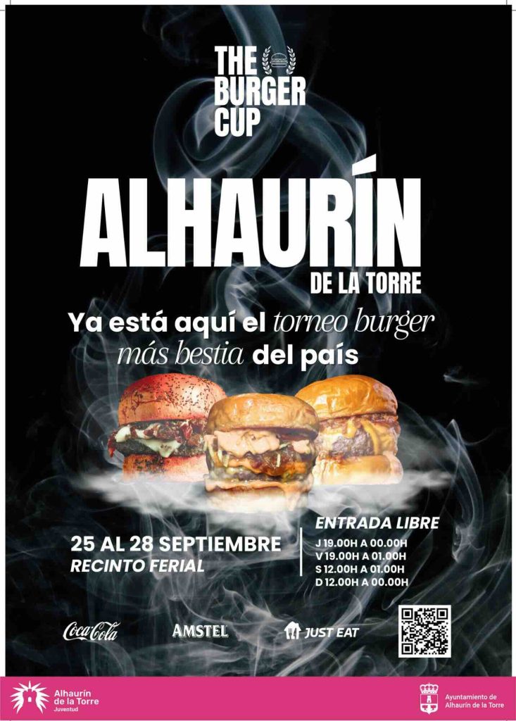 Alhaurín de la Torre acoge la próxima semana, del jueves 25 al domingo 28 de septiembre en el Recinto Ferial ‘The Burger Cup’, un campeonato de hamburguesas que está recorriendo numerosas ciudades españolas siendo un auténtico éxito y que llega a Alhaurín de la Torre por primera vez. La cita está organizada por el Área de Juventud y cuenta con la participación de nueve marcas que van a ofrecer sus espectaculares hamburguesas para que los asistentes puedan deleitarlas y votar a sus favoritas para convertirla en la mejor del evento. Igualmente habrá ‘food trucks’ de postres.