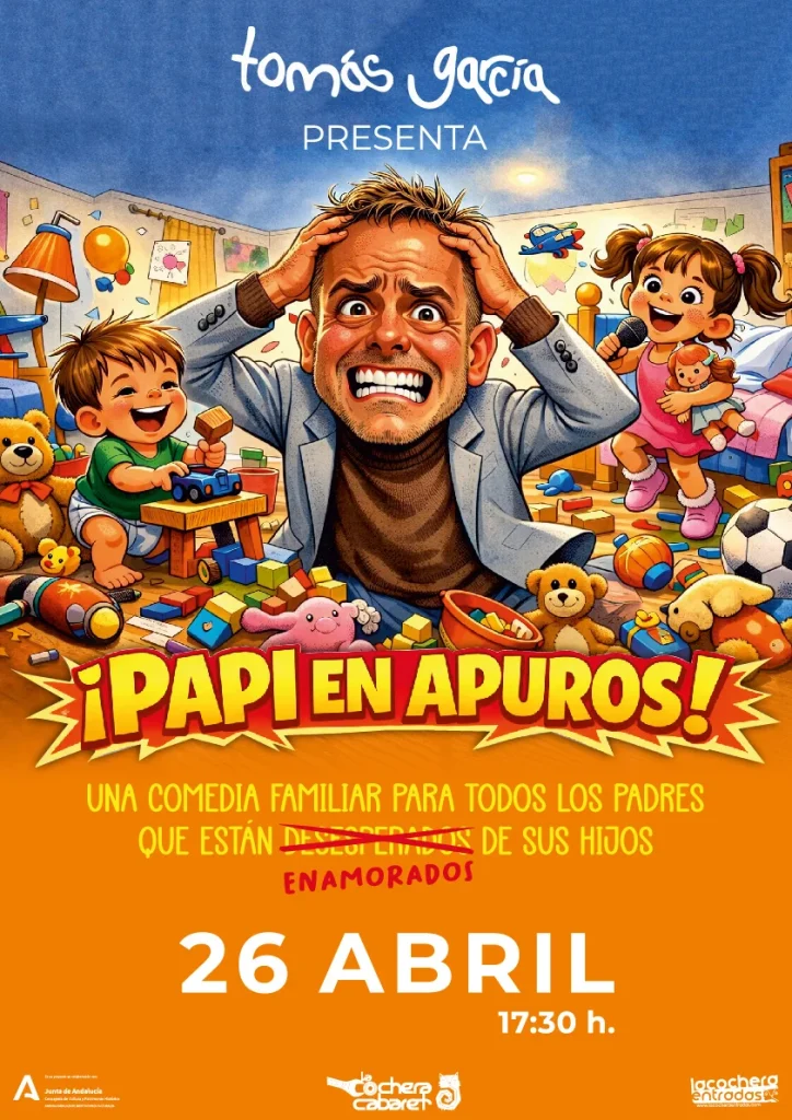 El humorista malagueño Tomás García regresa a La Cochera Cabaret con su show ‘Papi en apuros’. Será este domingo 26 de abril, a partir de las 17.30 horas. El precio único de las entradas es de 18 euros.