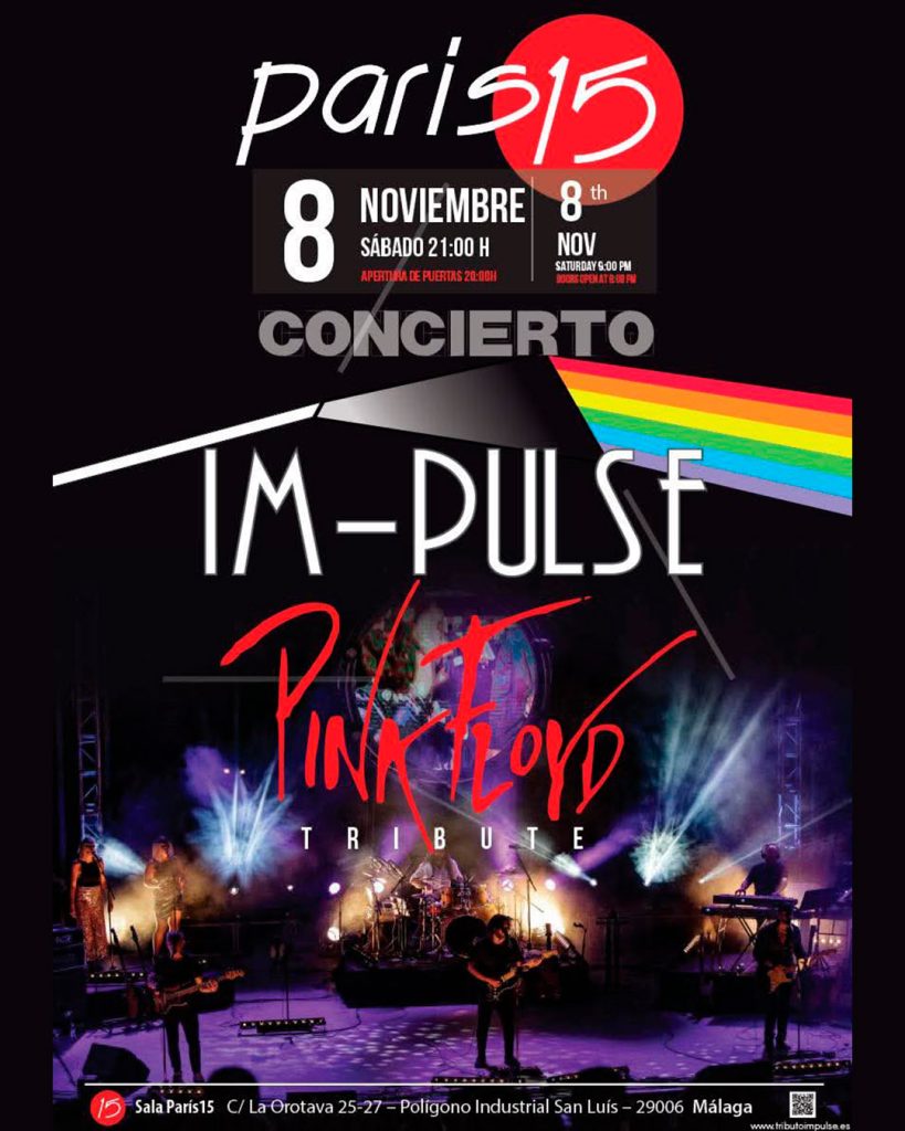 La banda malagueña IM-PULSE realiza un tributo a la mítica banda Pink Floyd. Será este sábado 8 de noviembre, a las 21.00 horas, en la Sala Paris 15. Las puertas se abrirán una hora antes.
