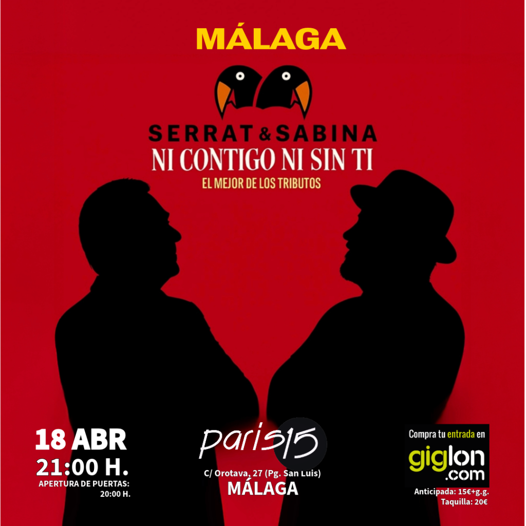 Llega a la Sala París 15 de Málaga este sábado 18 de abril un tributo a Serrat & Sabina: ‘Dos pájaros de un tiro’, desde las 20.00 horas.
