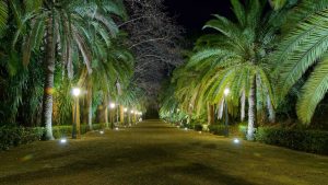 Desde junio a octubre se ofrecen visitas guiadas nocturnas de 1,5 horas, en grupo. Se trata de un recorrido con una mirada histórica para conocer el jardín de noche con una iluminación especial. «Noches con historia» para descubrir la Málaga del siglo XIX.